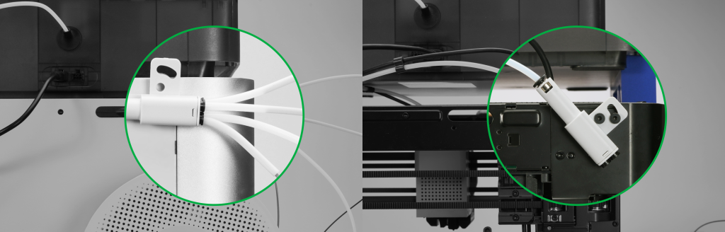 – Connect the PTFE tube from the tool head to the OUT end of the Bambu 4-in-1 PTFE Adapter.