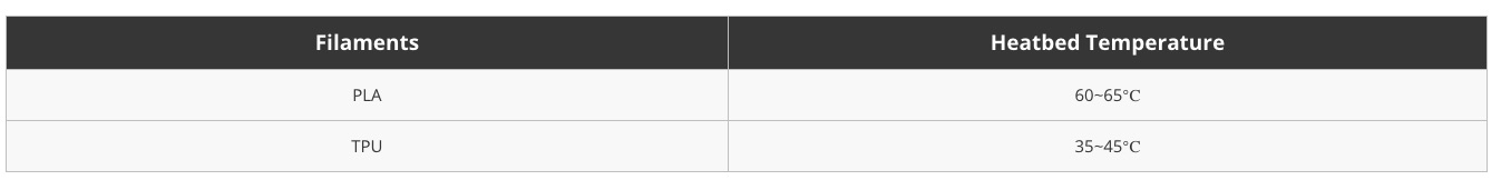 Bambu lab rekommenderar att du använder PLA- och TPU-filament för utskrift. Välj Smooth PEI Plate/High Temp Plate för val av byggyta i Bambu Studio.